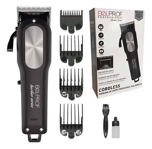 Maquina Cortadora De Pelo Inalambrica Belprof Barberia Negro
