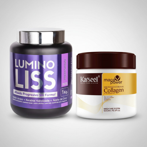 ALISADO PROGRESIVO LUMINO LISS SIN FORMOL 1000 g + MÁSCARA KARSEELL MACA POWER CON COLÁGENO 500 g