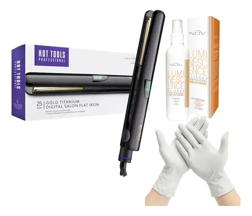 PLANCHITA DE PELO HOT TOOLS DIGITAL TITANIO ORO 25 MM ? 230°C + ALISADO SIN FORMOL NOV 150ML + PAR DE GUANTES DE REGALO