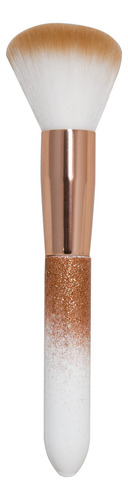> Brocha grande con mango en tono rose gold y acabado glitter degradado, perfecta para aplicar polvos, rubor o contorno.